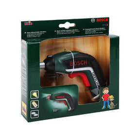 Young craftsmen will love this battery-powered Theo Klein cordless screwdriver: The perfect imitation of its famous big brother the Bosch Ixolino; it can turn both clockwise and anti-clockwise and it even has two interchangeable bits for either slotted or cross-head screws. The battery-powered toy screwdriver has light and sound functions when you press the switch and interchangeable bits.