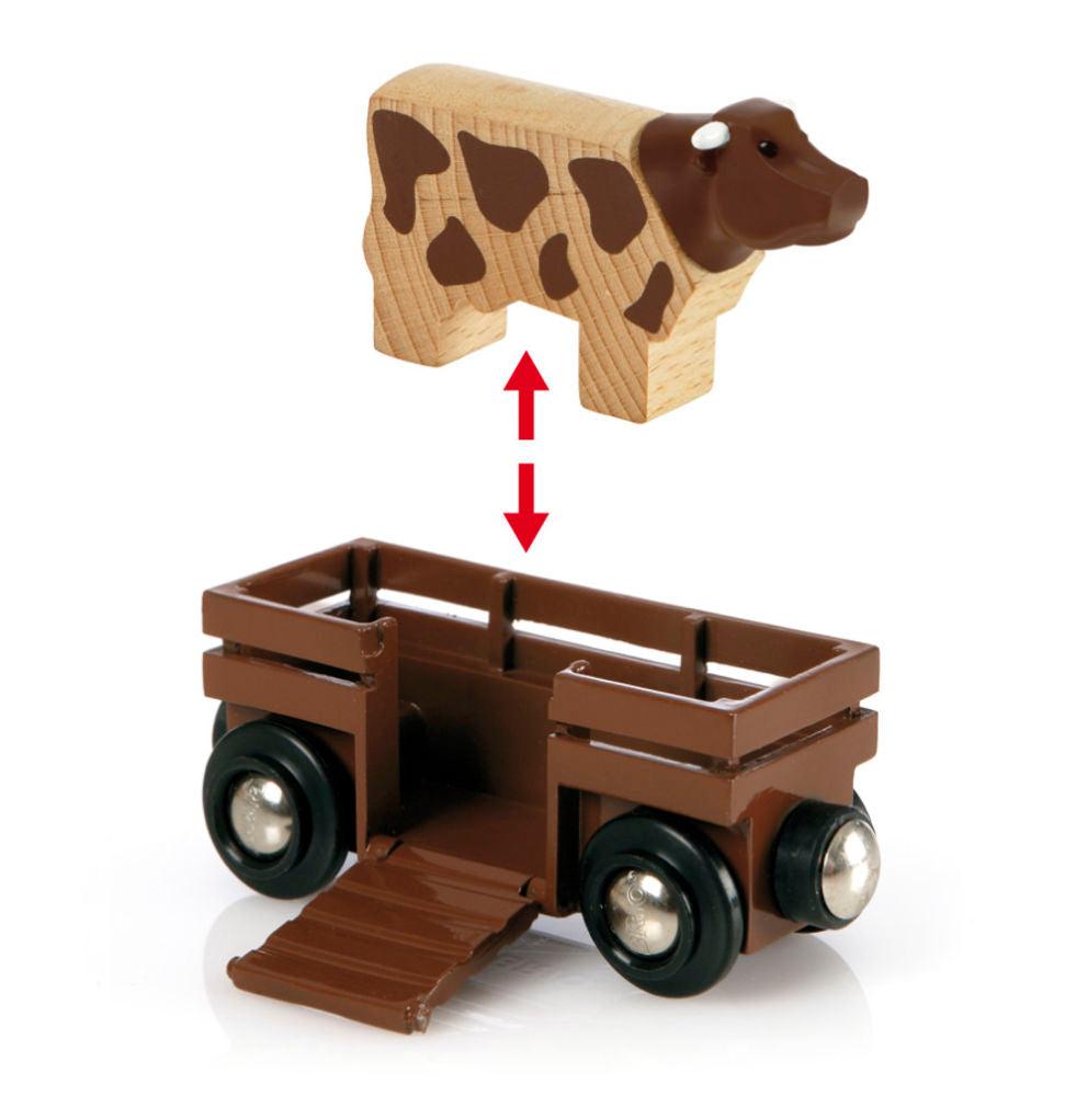 Bring the charm of farm life into your child's playroom with the BRIO Farm Railway Set. This 20-piece set lets children experience the joys of farm work and animal care, from driving the tractor with cargo to loading hay with the magnetic crane and transporting the wooden cow in the red Farm Engine. With fences, a cow crossing, and plenty of interactive features, this set encourages imaginative roleplay and fine motor development.