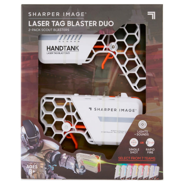 Experience thrilling battles with the Sharper Image Laser Tag Blaster Duo, your ultimate ticket to action-packed laser tag fun. This dynamic 2-pack blaster set comes alive with vivid lights and sounds, setting the stage for an electrifying atmosphere. Designed to support up to 7 teams with a range of 110 feet, these blasters encourage engaging, strategic play at parties or family events. Fully compatible with all other Sharper Image laser tag sets, you can easily expand your games by integrating multiple sets. With no need for life vests or extra equipment and ready to play straight out of the box, this laser tag set promises endless entertainment in your backyard or living room.
